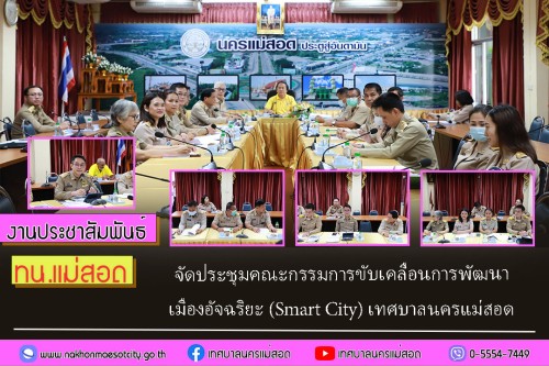 ว่าที่ร้อยตรี ประเสริฐ ปวงละคร นายกเทศมนตรีนครแม่สอด เป็นประธานในการประชุมฯ พร้อมด้วย คณะผู้บริหาร ปลัดเทศบาล รองปลัดเทศบาล ผู้อำนวยการกอง หัวหน้าส่วนราชการ และเจ้าหน้าที่ที่เกี่ยวข้อง เข้าร่วมการประชุมคณะกรรมการขับเคลื่อนการพัฒนาเมืองอัจฉริยะ (Smart City) เทศบาลนครแม่สอด โดยมีวาระการประชุมดังนี้