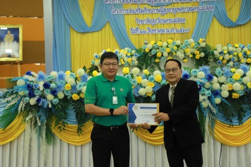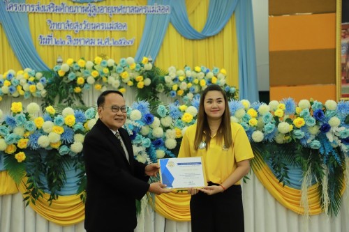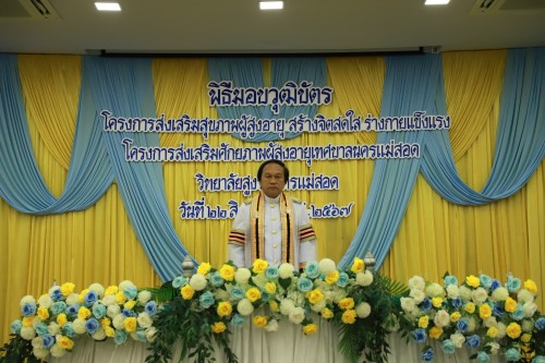 ว่าที่ร้อยตรี ประเสริฐ ปวงละคร นายกเทศมนตรีนครแม่สอด พร้อมด้วย คณะผู้บริหาร สมาชิกสภาเทศบาล ปลัดเทศบาล รองปลัดเทศบาล หัวหน้าส่วนราชการ เจ้าหน้าที่ที่เกี่ยวข้อง เข้าร่วมพิธีมอบวุฒิบัตรแก่นักศึกษาวิทยาลัยสูงวัยนครแม่สอด ที่ผ่านการฝึกอบรม "โครงการส่งเสริมสุขภาพผู้สูงอายุสร้างจิตสดใส ร่างกายแข็งแรง" รุ่นที่ 2 และโครงการพัฒนาศักยภาพผู้สูงอายุเทศบาลนครแม่สอด ประจำปีงบประมาณ พ.ศ.2567
