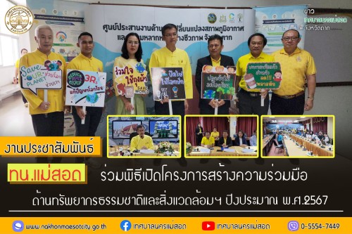 ว่าที่ร้อยตรี ประเสริฐ ปวงละครนายกเทศมนตรีนครแม่สอด พร้อมด้วย คณะผู้บริหารเทศบาลนครแม่สอด เข้าร่วมพิธีเปิดการอบรมเชิงปฏิบัติการถ่ายทอดองค์ความรู้เพื่อเตรียมความพร้อมรับมือต่อการเปลี่ยนแปลงสภาพภูมิอากาศให้แก่ภาคเอกชนโครงการสร้างความร่วมมือด้านทรัพยากรธรรมชาติและสิ่งแวดล้อมในระดับพื้นที่เพื่อรองรับการเปลี่ยนแปลงสภาพภูมิอากาศ ปีงประมาณ พ.ศ. 2567