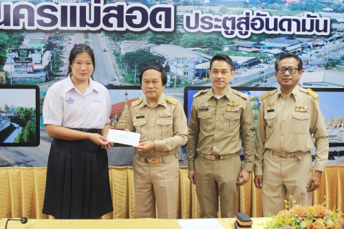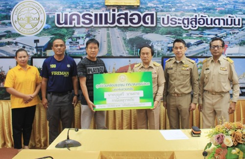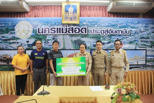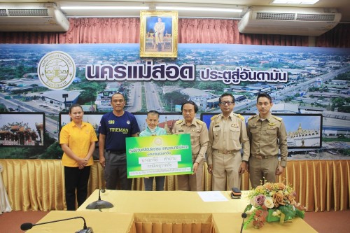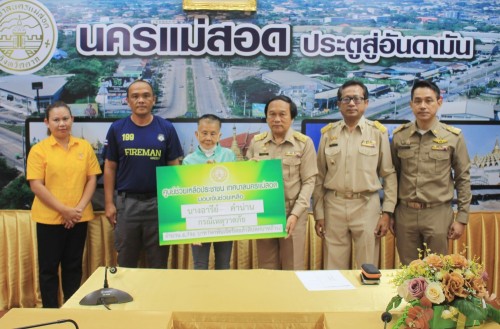 ว่าที่ร้อยตรี ประเสริฐ ปวงละคร นายกเทศมนตรีนครแม่สอด พร้อมด้วย หัวหน้าสำนักปลัดเทศบาล ผู้อำนวยการกองยุทธศาสตร์และงบประมาณ เจ้าหน้าที่ฝ่ายป้องกันและบรรเทาสาธารณภัย และเจ้าหน้าที่ที่เกี่ยวข้อง เข้าร่วมเป็นเกียรติพิธีมอบเงินเพื่อช่วยเหลือและบรรเทาความเดือนร้อนให้แก่ประชาชนผู้ประสบวาตภัย โดยศูนย์ช่วยเหลือประชาชน เทศบาลนครแม่สอด จำนวน 2 ครัวเรือน เป็นเงิน 22,796 บาท และมอบทุนการศึกษาสำหรับนักศึกษาและการให้ความช่วยเหลือนักเรียนในเขตเทศบาลนครแม่สอด จำนวน 1 ทุน