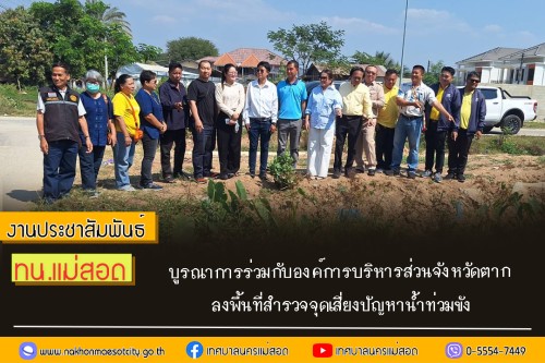 ว่าที่ร้อยตรี ประเสริฐ ปวงละคร นายกเทศมนตรีนครแม่สอด พร้อมด้วย คณะผู้บริหาร สมาชิกสภาเทศบาล คณะกรรมการประธานชุมชนจ๊อกจอสามัคคี และหัวหน้ากลุ่มสตรีแม่บ้านชุมชน มณีไพรสณฑ์ ร่วมให้การต้อนรับ นายธนัสถ์ ทวีเกื้อกุลกิจ ที่ปรึกษารัฐมนตรีว่าการกระทรวงแรงงาน พร้อมด้วย นางอัจฉรา ทวีเกื้อกุลกิจ นายกองค์การบริหารส่วนจังหวัดตาก สมาชิกสภาองค์การบริหารส่วนจังหวัดตาก เจ้าหน้าที่ฝ่ายการโยธาและคณะ ร่วมลงพื้นที่สำรวจจุดเสี่ยงต่อการเกิดปัญหาน้ำท่วมขัง เพื่อเตรียมการป้องกันน้ำท่วมขังในพื้นที่ และจัดเตรียมงบประมาณในการรองรับปัญหาน้ำท่วมขังแบบบูรณาการ่วมกันระหว่างเทศบาลนครแม่สอดและองค์การบริหารส่วนจังหวัดตาก