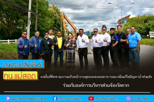 นายกุล เครือวีระ นายกเทศมนตรีนครแม่สอด พร้อมด้วย นายวสุธร บุญมาก และนายจิรวัฒน์ มงคลจุฑาเศรษฐ รองนายกเทศมนตรีนครแม่สอด คณะผู้บริหาร สมาชิกสภาเทศบาล นายประสาน มั่นมาก รองปลัดเทศบาล รักษาราชการแทน ปลัดเทศบาลนครแม่สอด เจ้าหน้าที่กองช่างสุขาภิบาล และเจ้าหน้าที่ที่เกี่ยวข้อง ลงพื้นที่ติดตามความคืบหน้างานขุดลอกคลองสาธารณะ เพื่อแก้ไขปัญหาน้ำท่วมขังในเขตเทศบาลนครแม่สอด โดยได้รับความอนุเคราะห์ จาก นางอัจฉรา ทวีเกื้อกูลกิจ นายกองค์การบริหารส่วนจังหวัดตาก และองค์การบริหารส่วนจังหวัดตาก