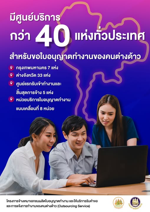 ด้วยกรมการจัดหางานได้ปรับเปลี่ยนรูปแบบและวิธีการดำเนินการให้บริการด้านการอนุญาตทำงานของคนต่างด้าว เพื่อปรับปรุงประสิทธิภาพ และคุณภาพการให้บริการด้านการทำงานของคนต่างด้าว เกี่ยวกับการขออนุญาตทำงานและการแจ้งการทำงานของคนต่างด้าว ผ่านช่องทางอิเล็กทรอนิกส์ของกรมการจัดหางานให้มีความสะดวก รวดเร็ว ทันสมัย โปร่งใส และตรวจสอบได้ ซึ่งมีกำหนดเปิดให้บริการในวันที่ 13 ตุลาคม 2568 เป็นต้นไป สำนักงานจัดหางานจังหวัดตาก จึงขอประชาสัมพันธ์ช่องทางอิเล็กทรอนิกส์สำหรับติดต่ดต่อกรมการจัดหางาน เพื่อขอรับบริการเกี่ยวกับการขออนุญาตทำงานและการแจ้งการทำงานของคนต่างด้าว และประชาสัมพันธ์รายชื่อและสถานที่ตั้งศูนย์บริการใบอนุญาตทำงานของคนต่างด้าว และศูนย์แรกรับเข้าทำงานและสิ้นสุดการจ้าง รายละเอียดตามสื่อด้านล่างนี้