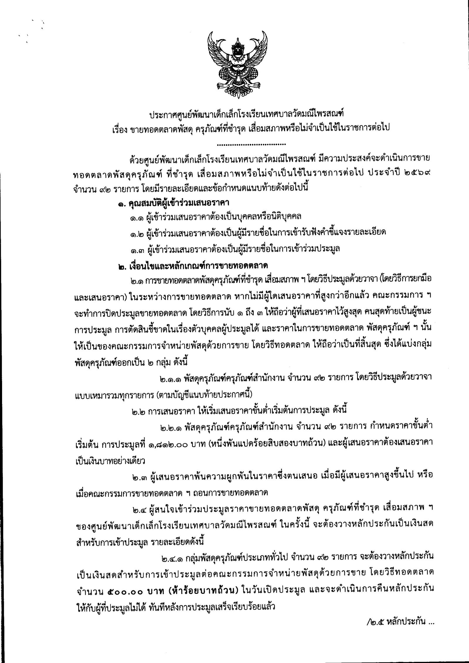 เทศบาลนครแม่สอด ขอประชาสัมพันธ์ ศูนย์พัฒนาเด็กเล็กโรงเรียนเทศบาลวัดมณีไพรสณฑ์ พัสดุขายทอดตลาด ครุภัณฑ์ที่ชำรุด เสื่อมสภาพหรือไม่จำเป็นใช้ในราชการต่อไป จำนวน 92 รายการ