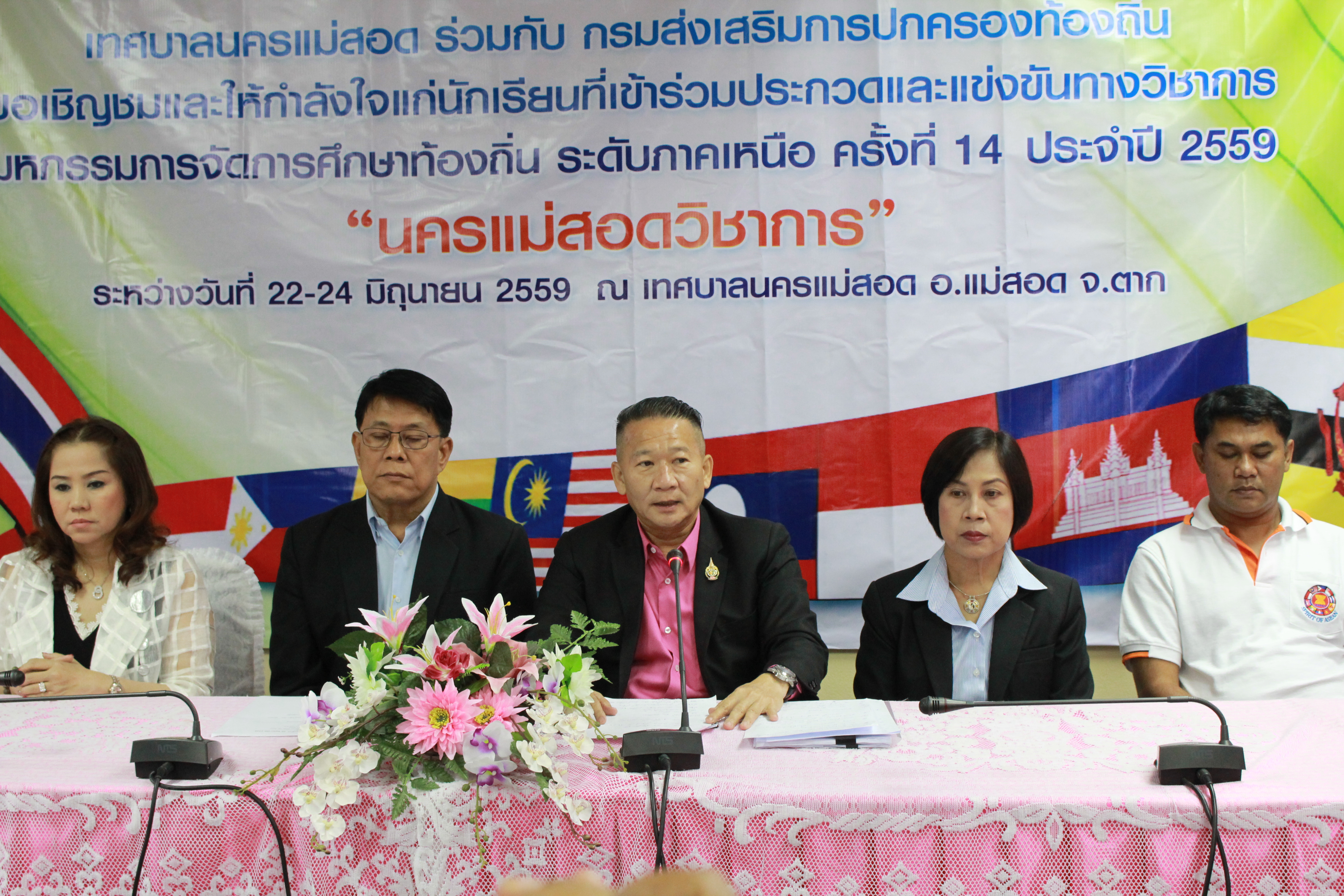 ดร.เทอดเกียรติ ชินสรนันท์ นายกเทศมนตรีนครแม่สอด แถลงข่าวมหกรรมการจัดการศึกษาท้องถิ่น ระดับภาคเหนือ ครั้งที่ 14 วันอาทิตย์ที่ 22 พฤษภาคม 2559 เวลา 13.00 น ณ ห้องประชุมโกเมน เทศบาลนครแม่สอด
