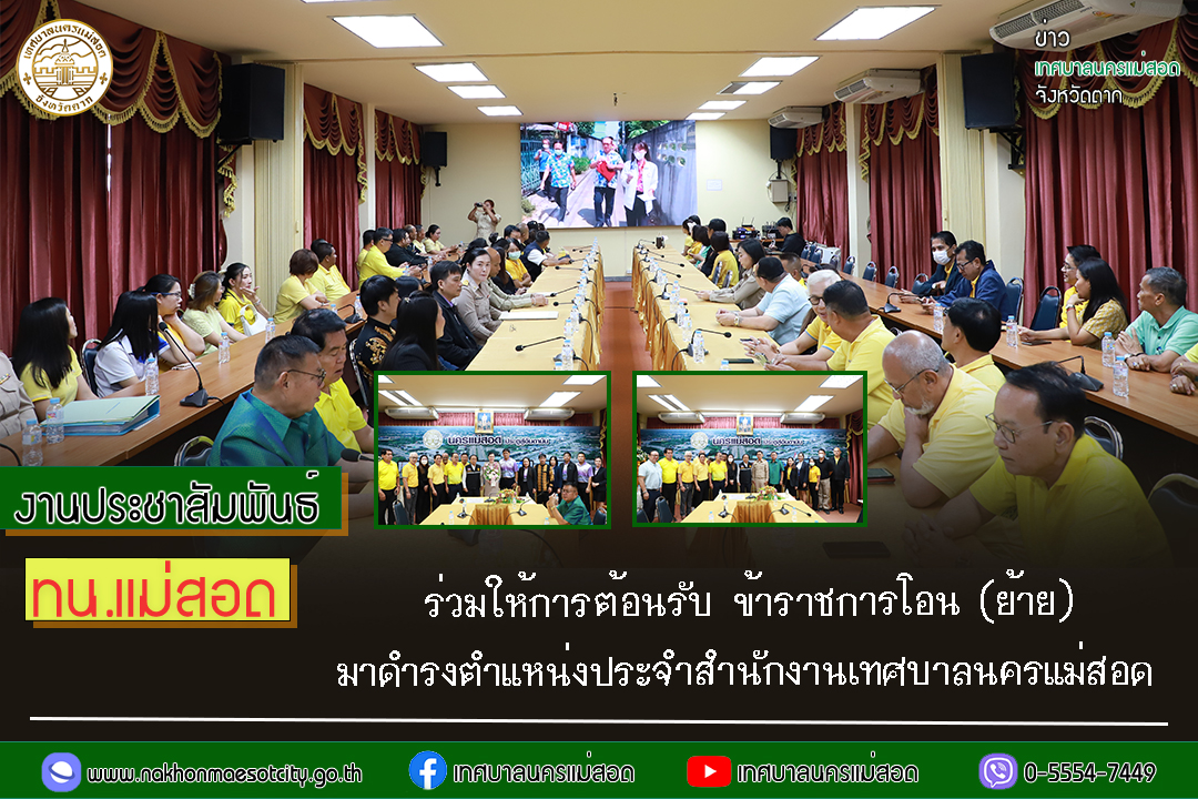 ทน.แม่สอด ร่วมให้การต้อนรับ ข้าราชการโอน (ย้าย) มาดำรงตำแหน่งประจำสำนักงานเทศบาลนครแม่สอด