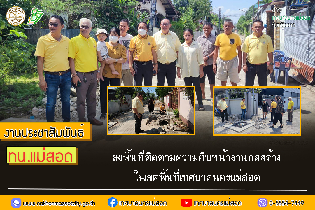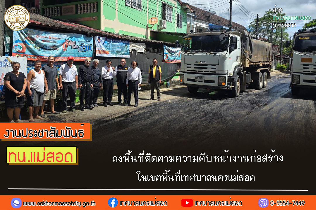 เทศบาลนครแม่สอด ลงพื้นที่ติดตามความคืบหน้างานก่อสร้างในเขตพื้นที่เทศบาลนครแม่สอด