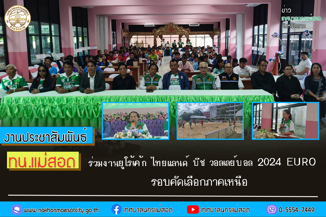 ทน.แม่สอด ร่วมงานยูโร้เค้ก ไทยแลนด์ บีช วอลเลย์บอล 2024 EURO รอบคัดเลือกภาคเหนือ และเยี่ยมชมเป็นกำลังใจให้นักกีฬาวอลเลย์บอล