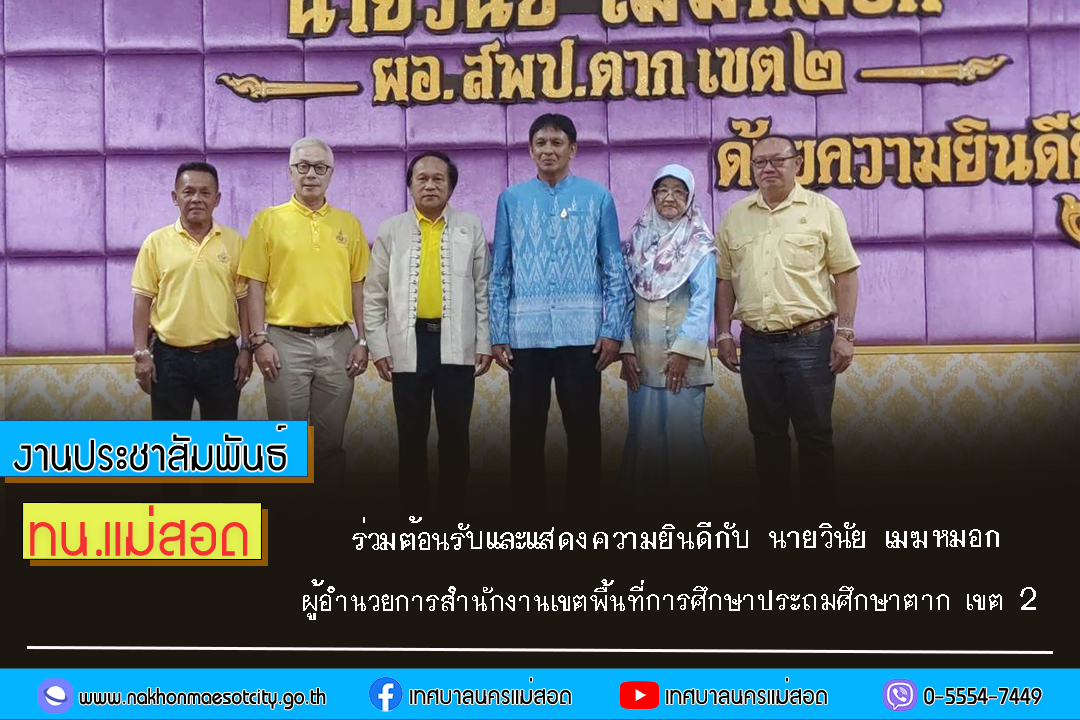 เทศบาลนครแม่สอด ร่วมต้อนรับและแสดงความยินดีกับ นายวินัย เมฆหมอก ผู้อำนวยการสำนักงานเขตพื้นที่การศึกษาประถมศึกษาตาก เขต 2