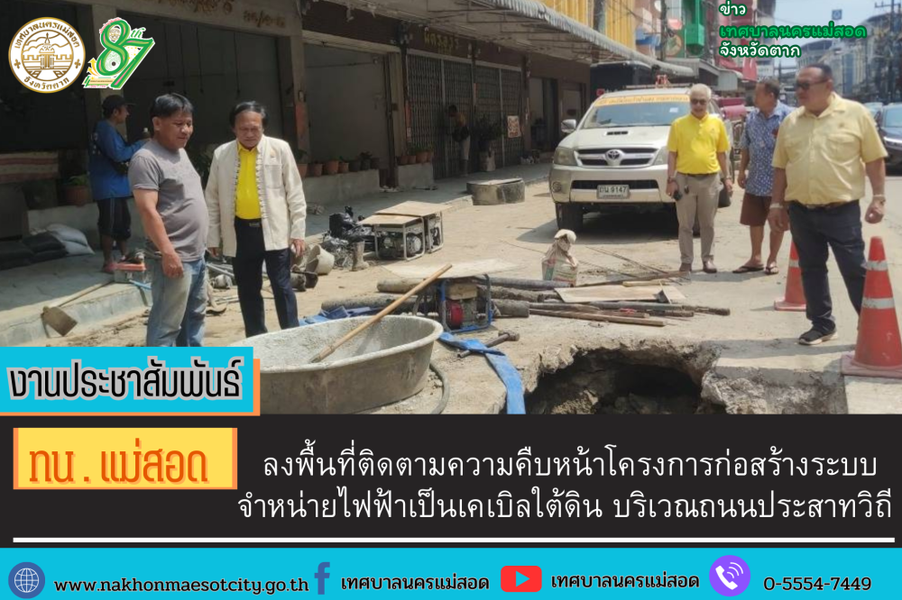 เทศบาลนครแม่สอด ลงพื้นที่ติดตามความคืบหน้าโครงการก่อสร้าง ระบบจำหน่ายไฟฟ้าเป็นเคเบิลใต้ดิน บริเวณถนนประสาทวิถี