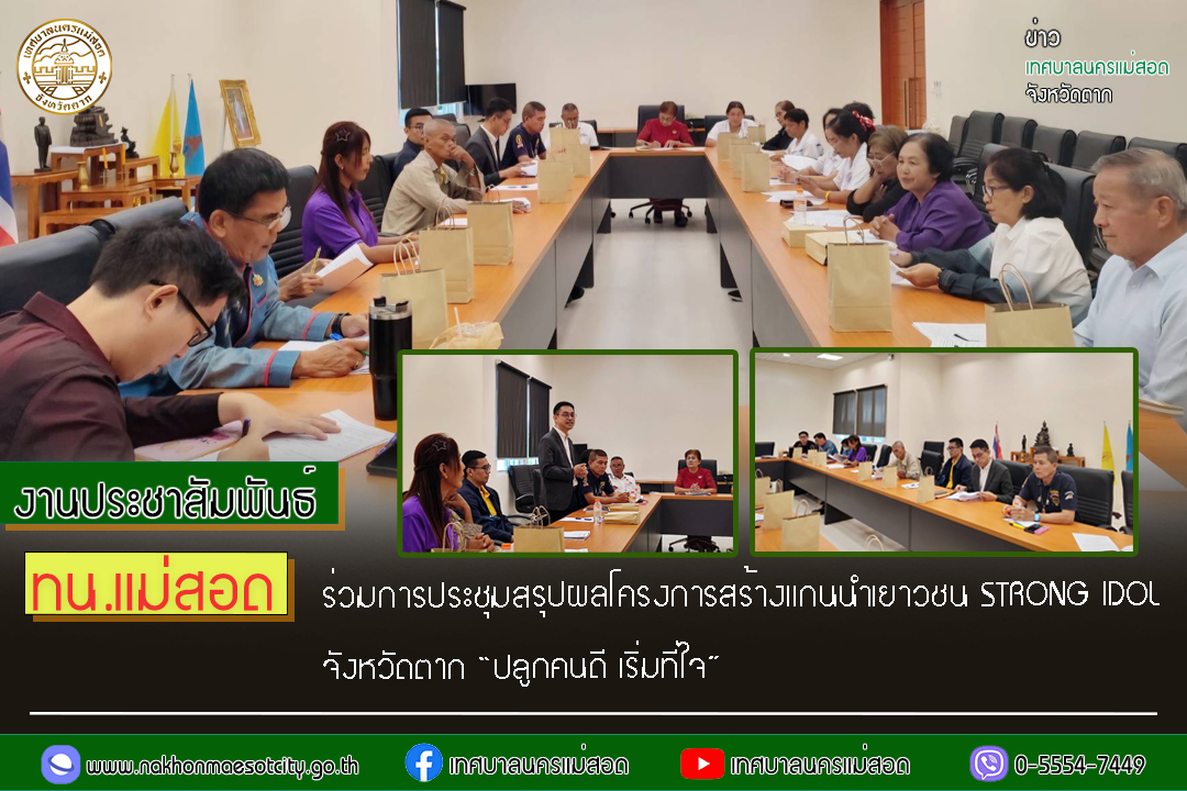 ทน.แม่สอด เข้าร่วมการประชุมสรุปผลโครงการสร้างแกนนำเยาวชน STRONG IDOL จังหวัดตาก ปลูกคนดี เริ่มที่ใจ