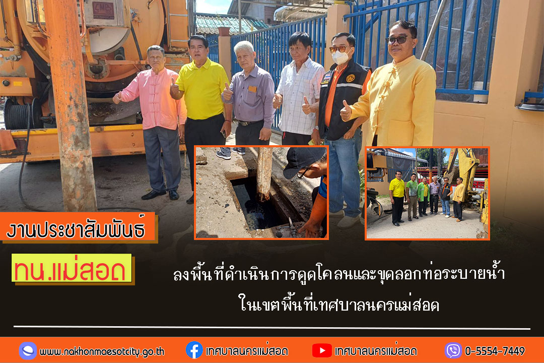เทศบาลนครแม่สอด ลงพื้นที่ดำเนินการดูดโคลนและขุดลอกท่อระบายน้ำ ในเขตพื้นที่เทศบาลนครแม่สอด