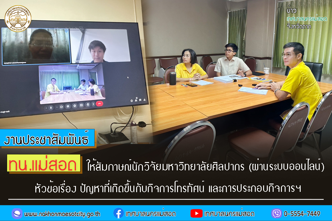 ทน.แม่สอด ให้สัมภาษณ์นักวิจัยมหาวิทยาลัยศิลปากร (ผ่านระบบออนไลน์) หัวข้อเรื่อง ปัญหาที่เกิดขึ้นกับกิจการโทรทัศน์ และการประกอบกิจการฯ