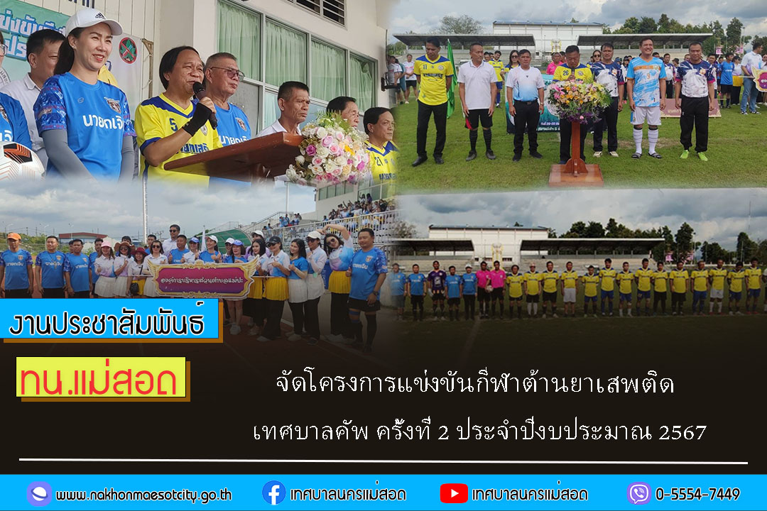 เทศบาลนครแม่สอด จัดโครงการแข่งขันกีฬาต้านยาเสพติด เทศบาลคัพ ครั้งที่ 2 ประจำปีงบประมาณ 2567