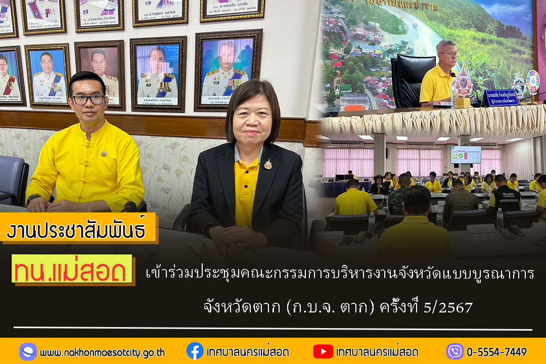 ทน.แม่สอด เข้าร่วมประชุมคณะกรรมการบริหารงานจังหวัดแบบบูรณาการ จังหวัดตาก (ก.บ.จ. ตาก) ครั้งที่ 5/2567