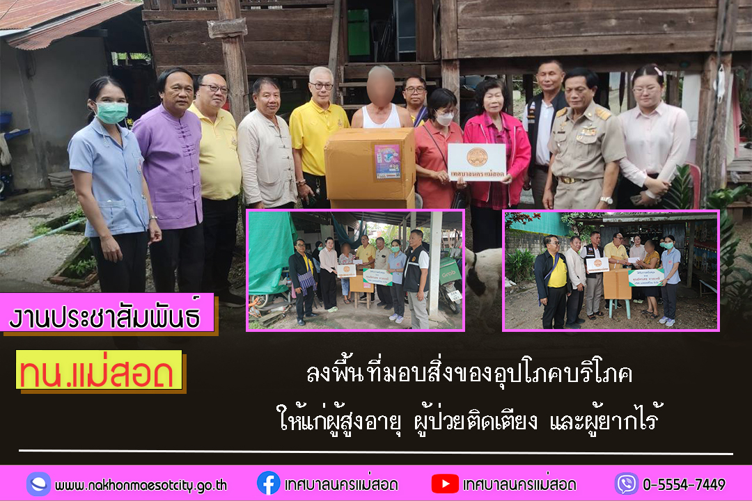 เทศบาลนครแม่สอด ลงพื้นที่มอบสิ่งของอุปโภคบริโภคให้แก่ผู้สูงอายุ ผู้ป่วยติดเตียง และผู้ยากไร้