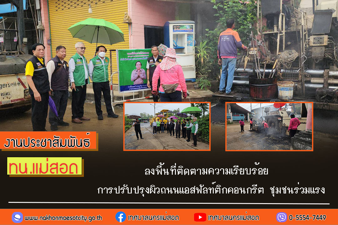 ทน.แม่สอด ลงพื้นที่ติดตามความเรียบร้อยการปรับปรุง ผิวถนนแอสฟัลท์ติกคอนกรีต ชุมชนร่วมแรง
