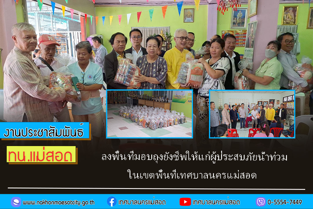 เทศบาลนครแม่สอด ลงพื้นที่มอบถุงยังชีพให้แก่ผู้ประสบภัยน้ำท่วม ในเขตพื้นที่เทศบาลนครแม่สอด