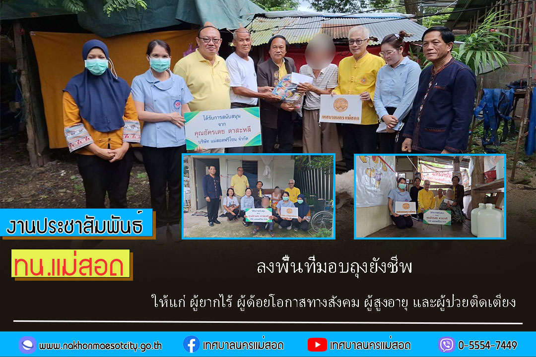 เทศบาลนครแม่สอด ลงพื้นที่มอบถุงยังชีพ ให้แก่ ผู้ยากไร้ ผู้ด้อยโอกาสทางสังคม ผู้สูงอายุ และผู้ป่วยติดเตียง