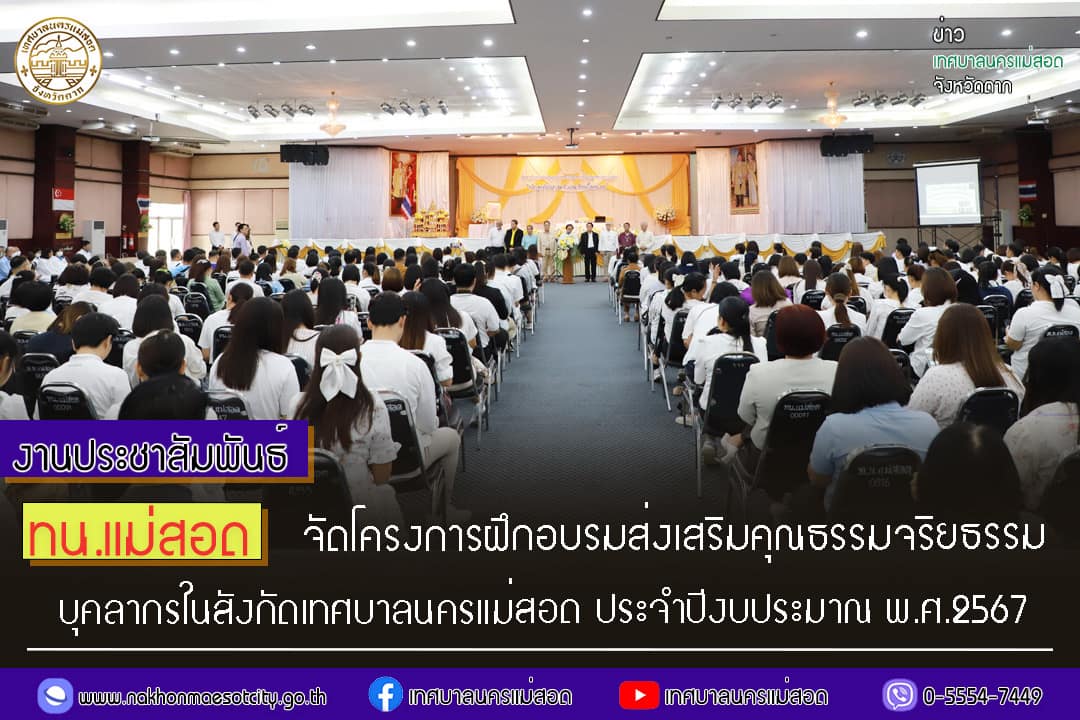 ทน.แม่สอด จัดโครงการฝึกอบรมส่งเสริมคุณธรรมจริยธรรมบุคลากรในสังกัดเทศบาลนครแม่สอด