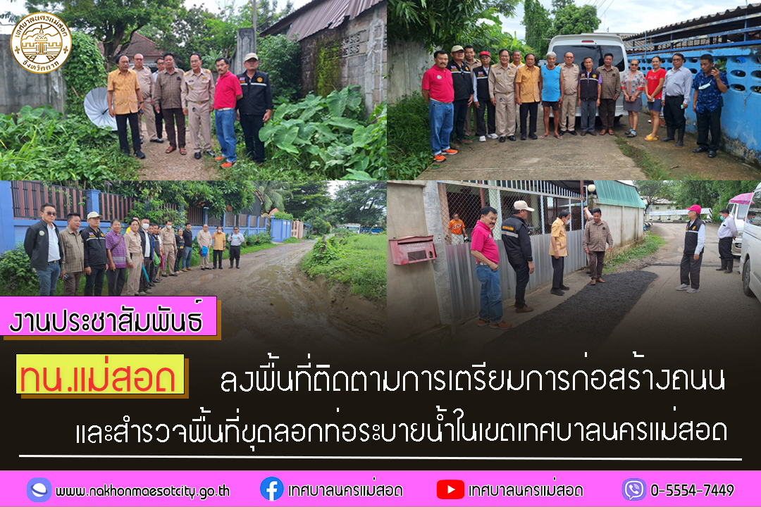 เทศบาลนครแม่สอด ลงพื้นที่ติดตามการเตรียมการก่อสร้างถนนและสำรวจพื้นที่ขุดลอกท่อระบายน้ำในเขตเทศบาลนครแม่สอด