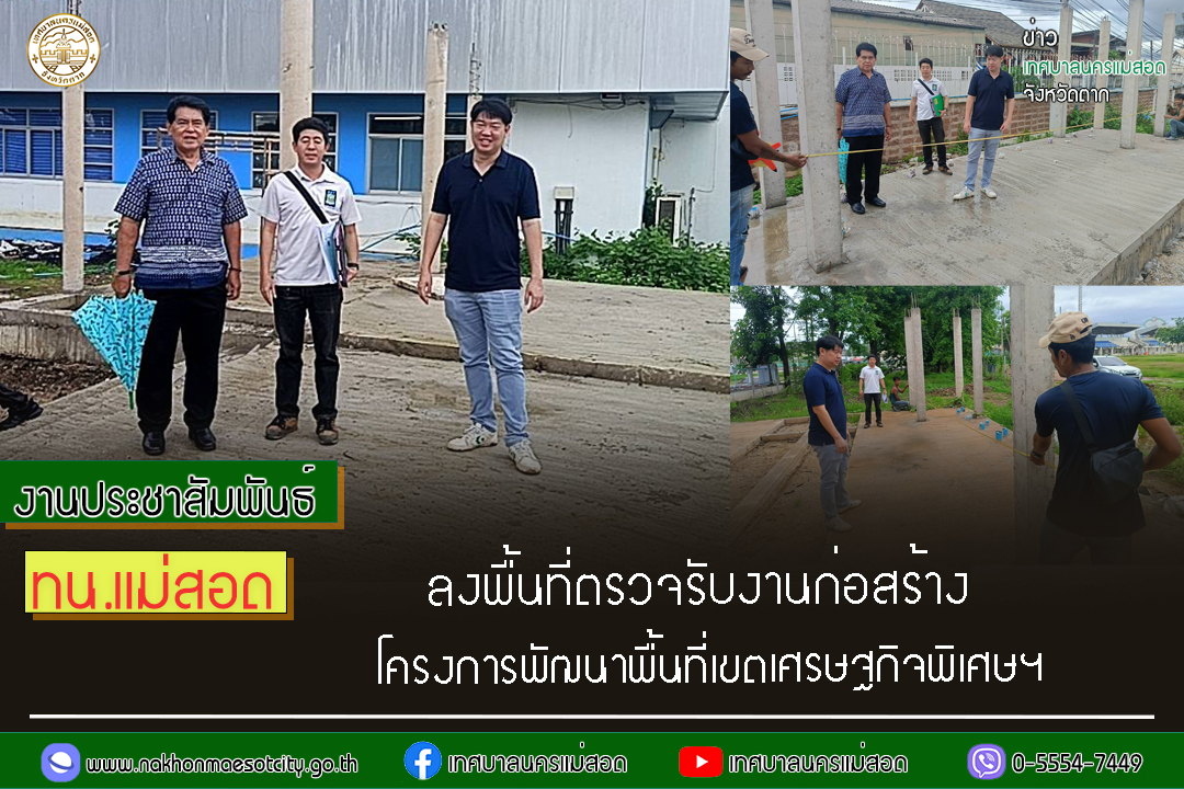 เทศบาลนครแม่สอด ลงพื้นที่ตรวจรับงานก่อสร้างโครงการพัฒนาพื้นที่เขตเศรษฐกิจพิเศษ ฯ