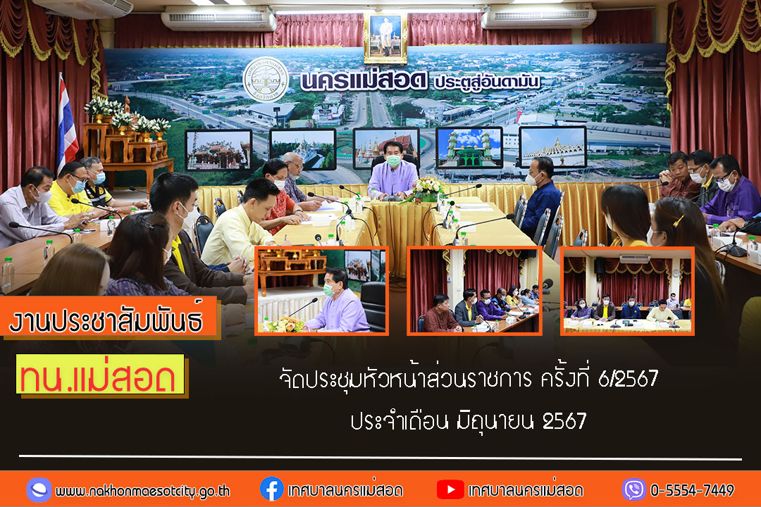 ทน.แม่สอด จัดประชุมหัวหน้าส่วนราชการ ครั้งที่ 6/2567 ประจำเดือน มิถุนายน 2567