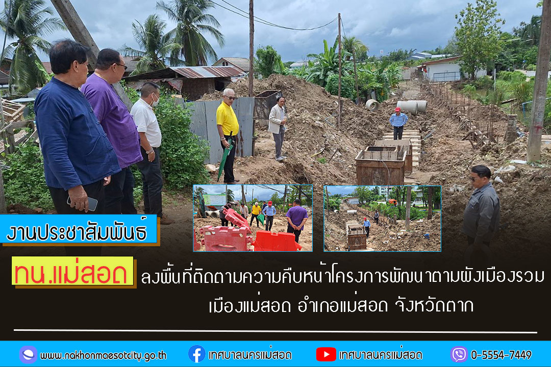 ทน.แม่สอด ลงพื้นที่ติดตามความคืบหน้าโครงการพัฒนาตามผังเมืองรวมเมืองแม่สอด อำเภอแม่สอด จังหวัดตาก