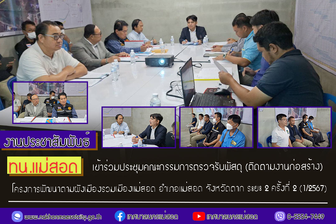 เทศบาลนครแม่สอด เข้าร่วมประชุมคณะกรรมการตรวจรับพัสดุ (ติดตามงานก่อสร้าง) โครงการพัฒนาตามผังเมืองรวมเมืองแม่สอด อำเภอแม่สอด จังหวัดตาก ระยะ 2 ครั้งที่ 2 (1/2567)