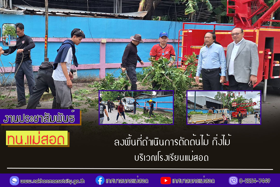 เทศบาลนครแม่สอด ลงพื้นที่ดำเนินการตัดต้นไม้ กิ่งไม้ บริเวณโรงเรียนแม่สอด
