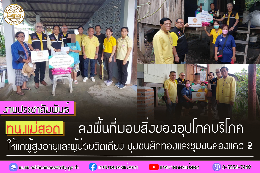 ทน.แม่สอด ลงพื้นที่มอบสิ่งของอุปโภคบริโภคให้แก่ผู้สูงอายุและผู้ป่วยติดเตียง