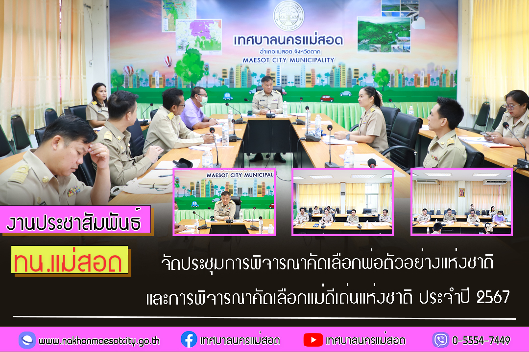 ทน.แม่สอด จัดประชุมการพิจารณาคัดเลือกพ่อตัวอย่างแห่งชาติ และการพิจารณาคัดเลือกแม่ดีเด่นแห่งชาติ ประจำปี 2567