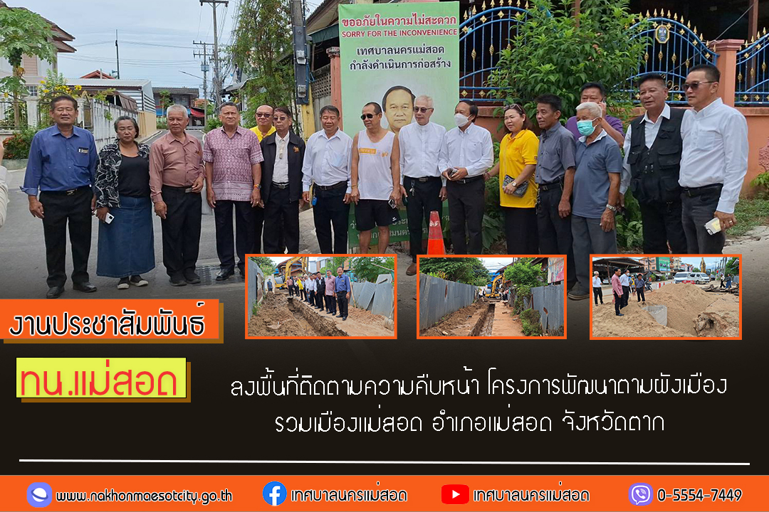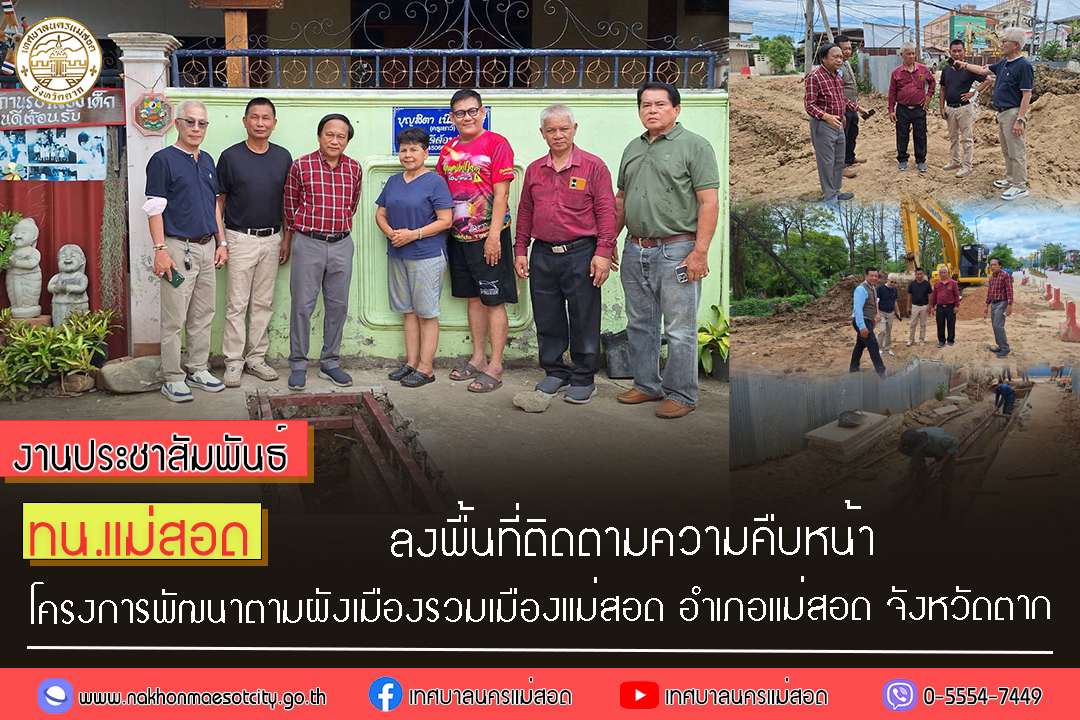 ทน.แม่สอด ลงพื้นที่ติดตามความคืบหน้าโครงการพัฒนาตามผังเมืองรวมเมืองแม่สอด อำเภอแม่สอด จังหวัดตาก