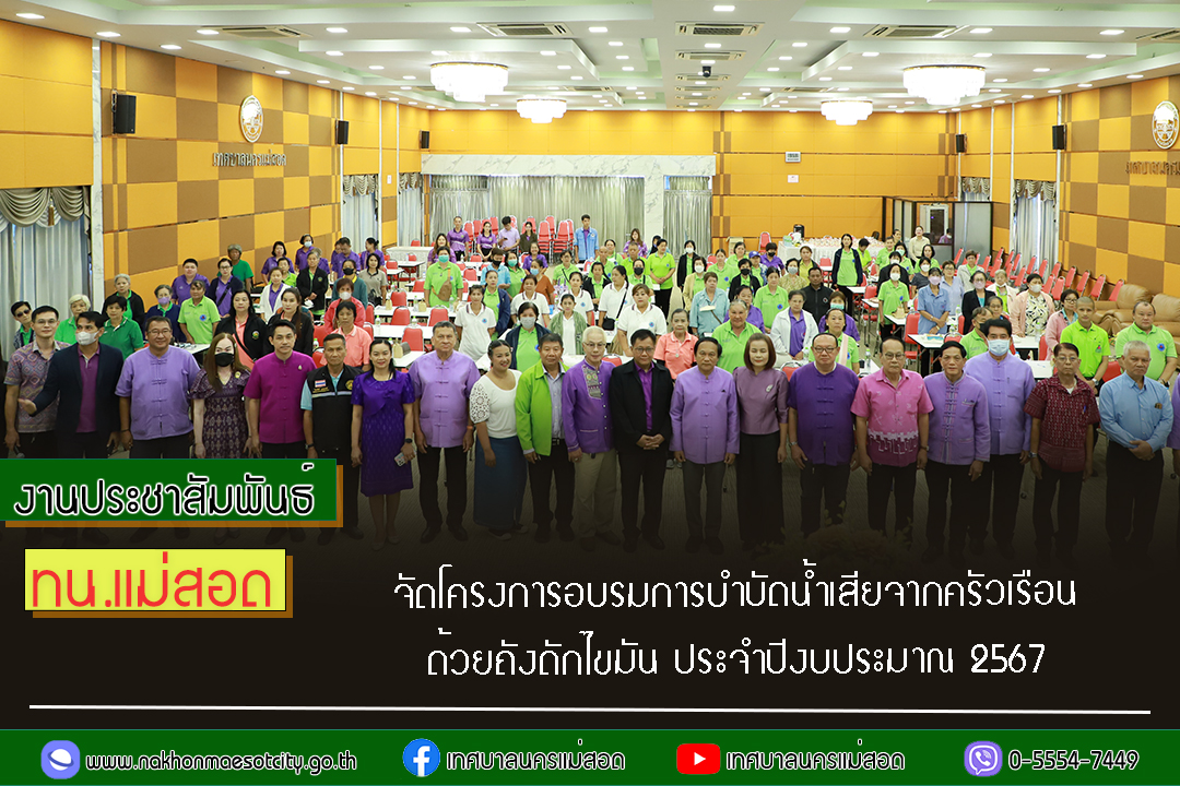 เทศบาลนครแม่สอด จัดโครงการอบรมการบำบัดน้ำเสียจากครัวเรือนด้วยถังดักไขมัน ประจำปีงบประมาณ 2567