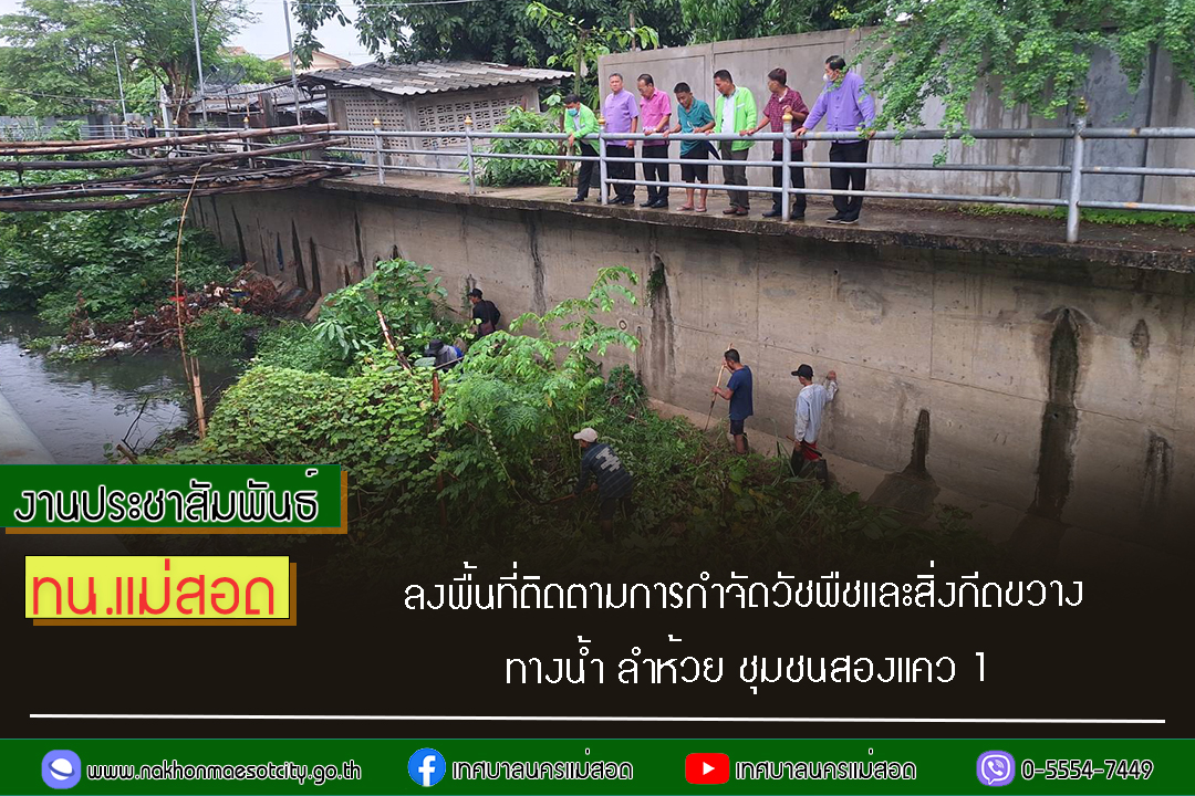 ทน.แม่สอด ลงพื้นที่ติดตามการกำจัดวัชพืชและสิ่งกีดขวางทางน้ำ ลำห้วย ชุมชนสองแคว 1