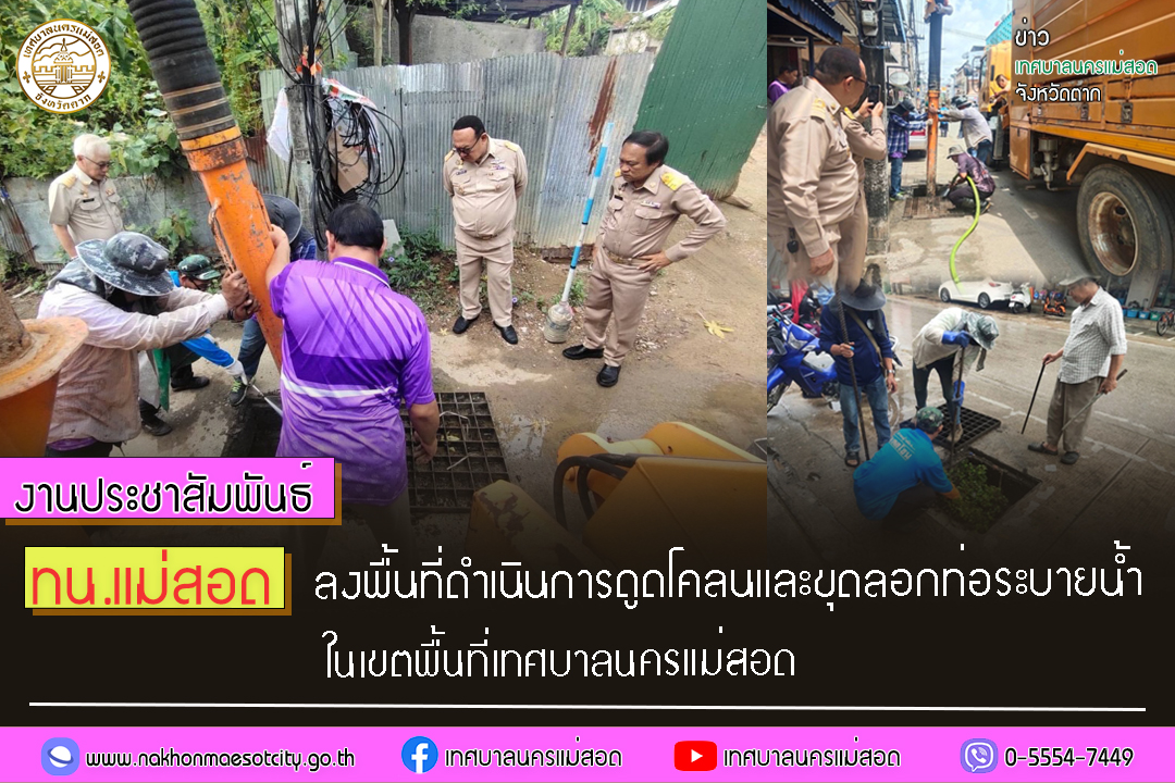 ทน.แม่สอด ลงพื้นที่ดำเนินการดูดโคลนและขุดลอกท่อระบายน้ำ ในเขตพื้นที่เทศบาลนครแม่สอด