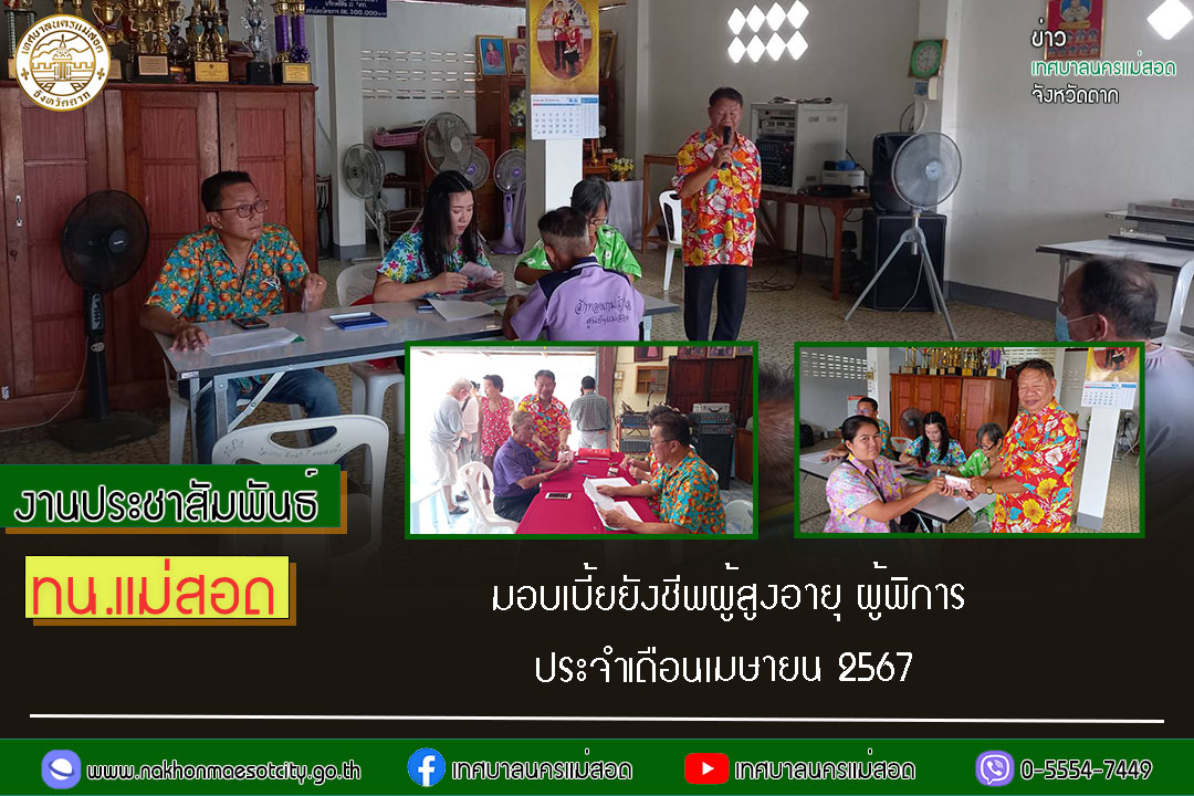 ทน.แม่สอด มอบเบี้ยยังชีพผู้สูงอายุ ผู้พิการ ประจำเดือนเมษายน 2567