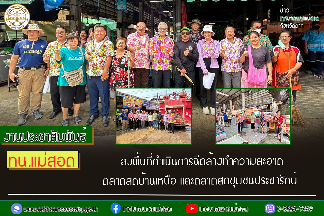 เทศบาลนครแม่สอด ลงพื้นที่ดำเนินการฉีดล้างทำความสะอาดตลาดสดบ้านเหนือ และตลาดสดชุมชนประชารักษ์