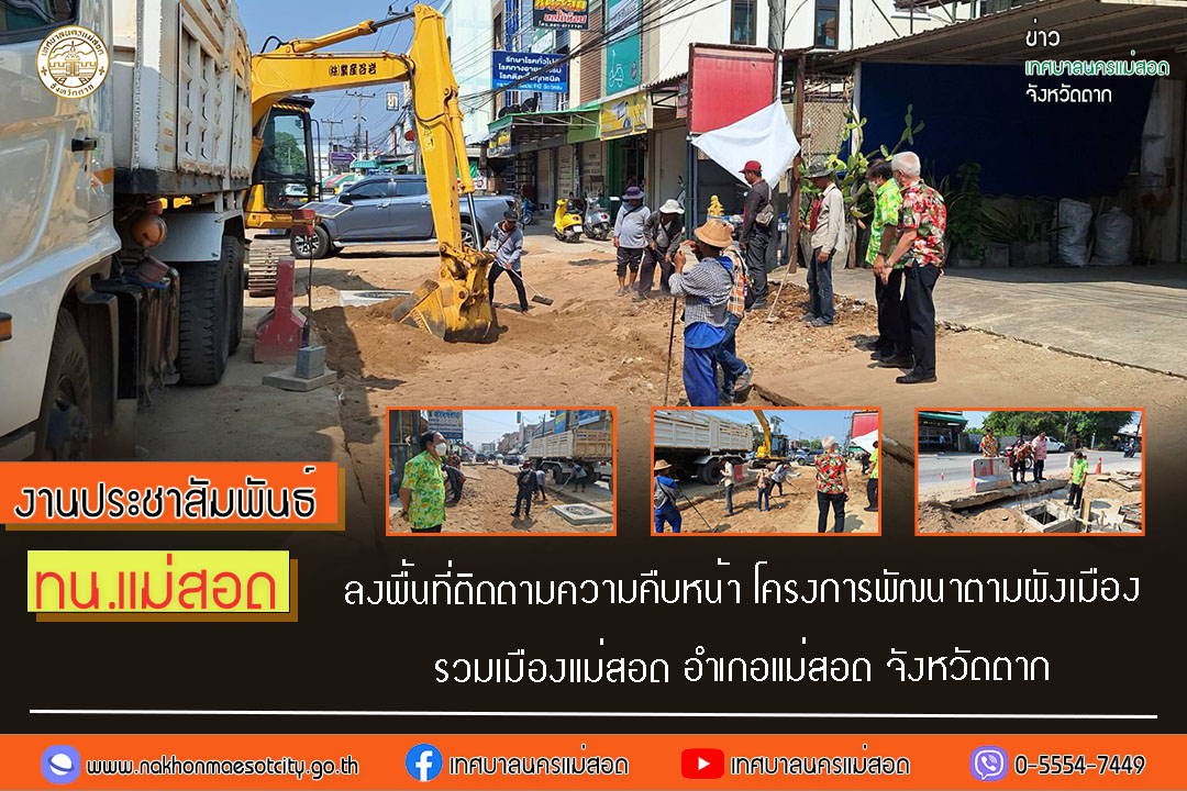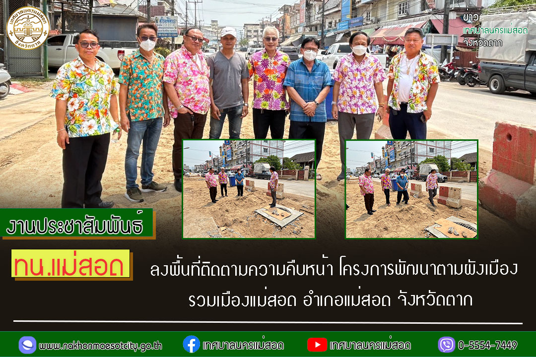 ทน.แม่สอด ลงพื้นที่ติดตามความคืบหน้า โครงการพัฒนาตามผังเมืองรวมเมืองแม่สอด อำเภอแม่สอด จังหวัดตาก