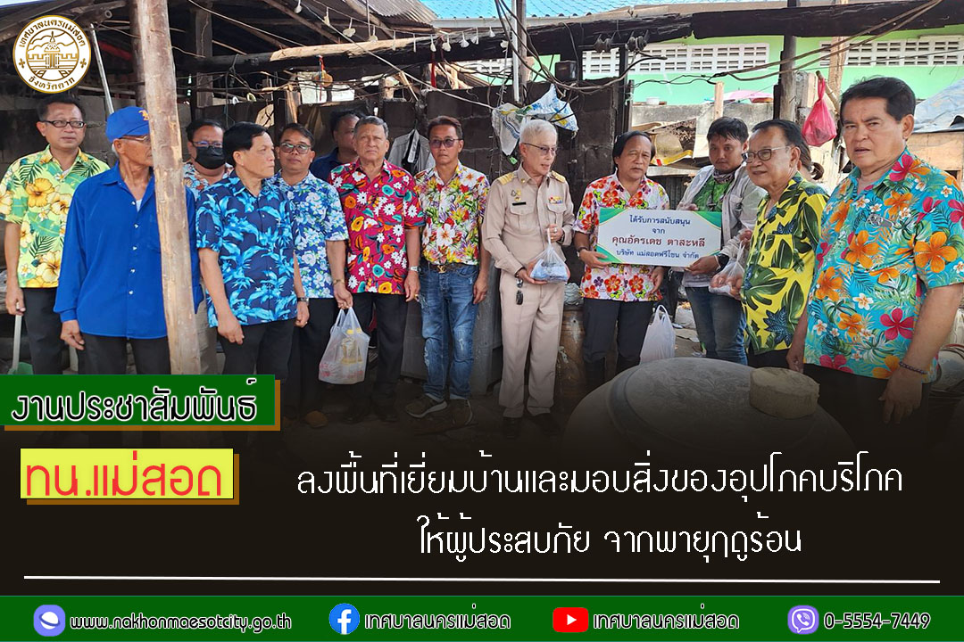 ทน.แม่สอด ลงพื้นที่เยี่ยมบ้านและมอบสิ่งของอุปโภคบริโภคให้ผู้ประสบภัยจากพายุฤดูร้อน