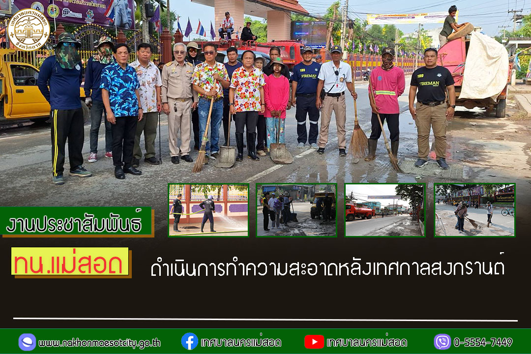 เทศบาลนครแม่สอด ดำเนินการทำความสะอาดหลังเทศกาลสงกรานต์