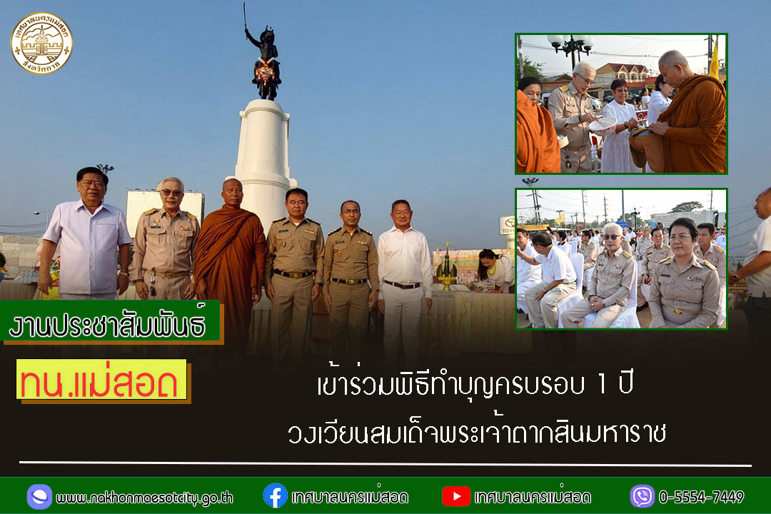 เทศบาลนครแม่สอด เข้าร่วมพิธีทำบุญครบรอบ 1 ปี วงเวียนสมเด็จพระเจ้าตากสินมหาราช