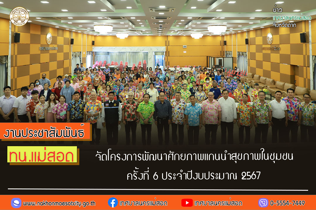 ทน.แม่สอด จัดโครงการพัฒนาศักยภาพแกนนำสุขภาพในชุมชน ครั้งที่ 6 ประจำปีงบประมาณ 2567