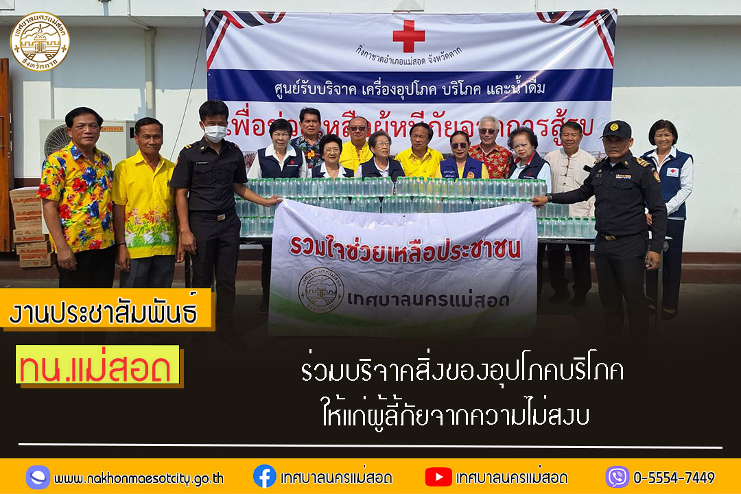ทน.แม่สอด ร่วมบริจาคสิ่งของอุปโภคบริโภคให้แก่ผู้ลี้ภัยจากความไม่สงบ