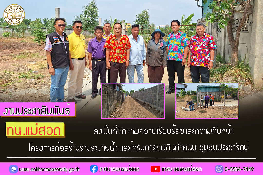 ทน.แม่สอด ลงพื้นที่ติดตามความเรียบร้อยและความคืบหน้า โครงการก่อสร้างรางระบายน้ำ และโครงการถมดินทำถนน ชุมชนประชารักษ์