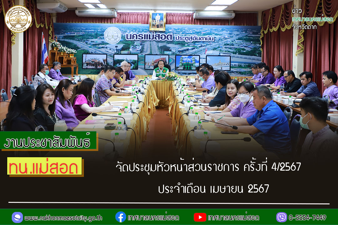 เทศบาลนครแม่สอด จัดประชุมหัวหน้าส่วนราชการ ครั้งที่ 4/2567 ประจำเดือน เมษายน 2567