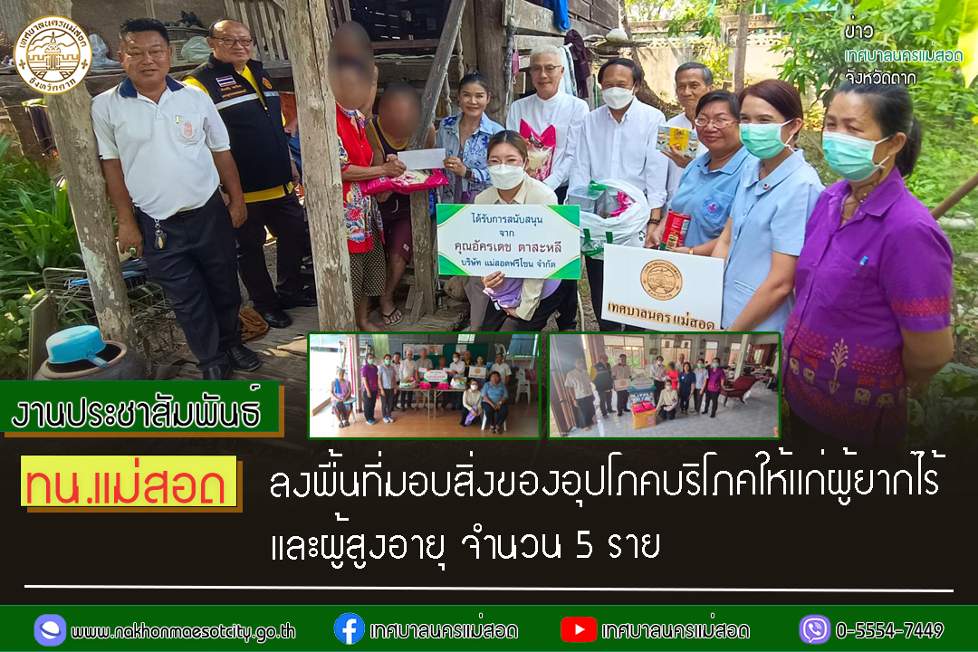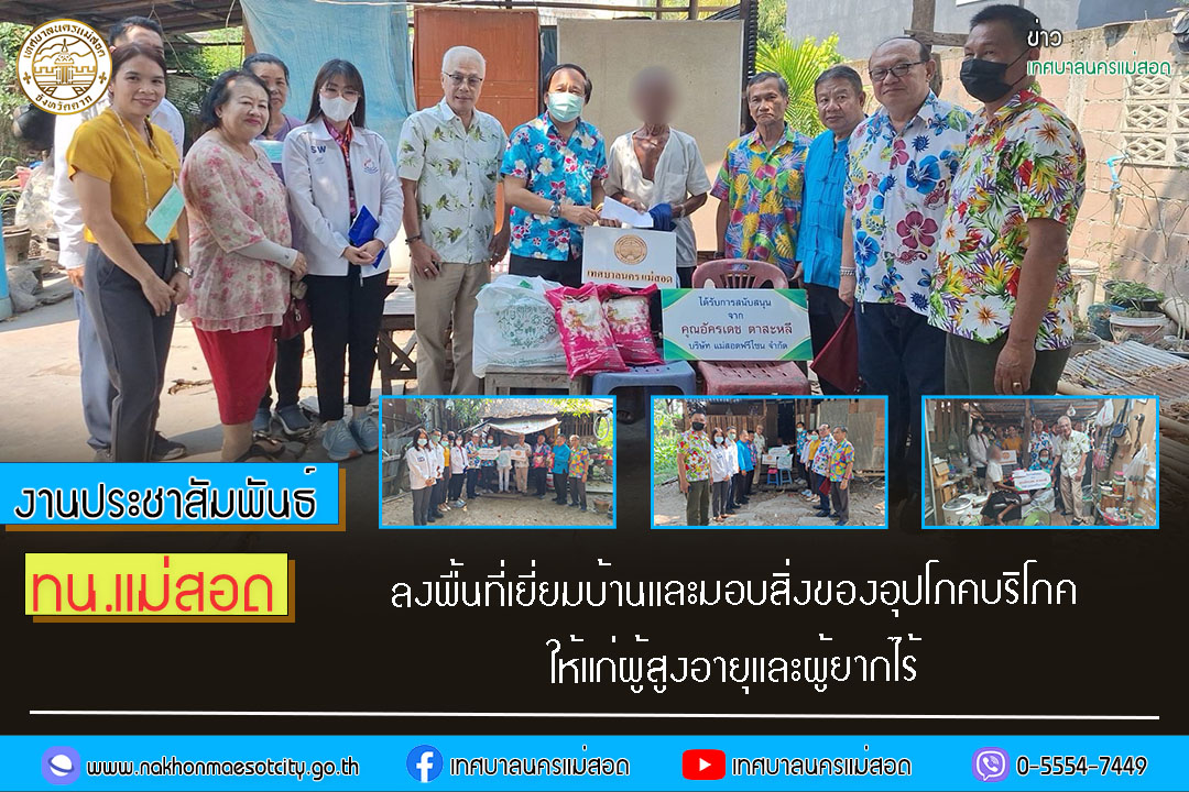ทน.แม่สอด ลงพื้นที่เยี่ยมบ้านและมอบสิ่งของอุปโภคบริโภคให้แก่ผู้สูงอายุและผู้ยากไร้ จำนวน 5 ราย