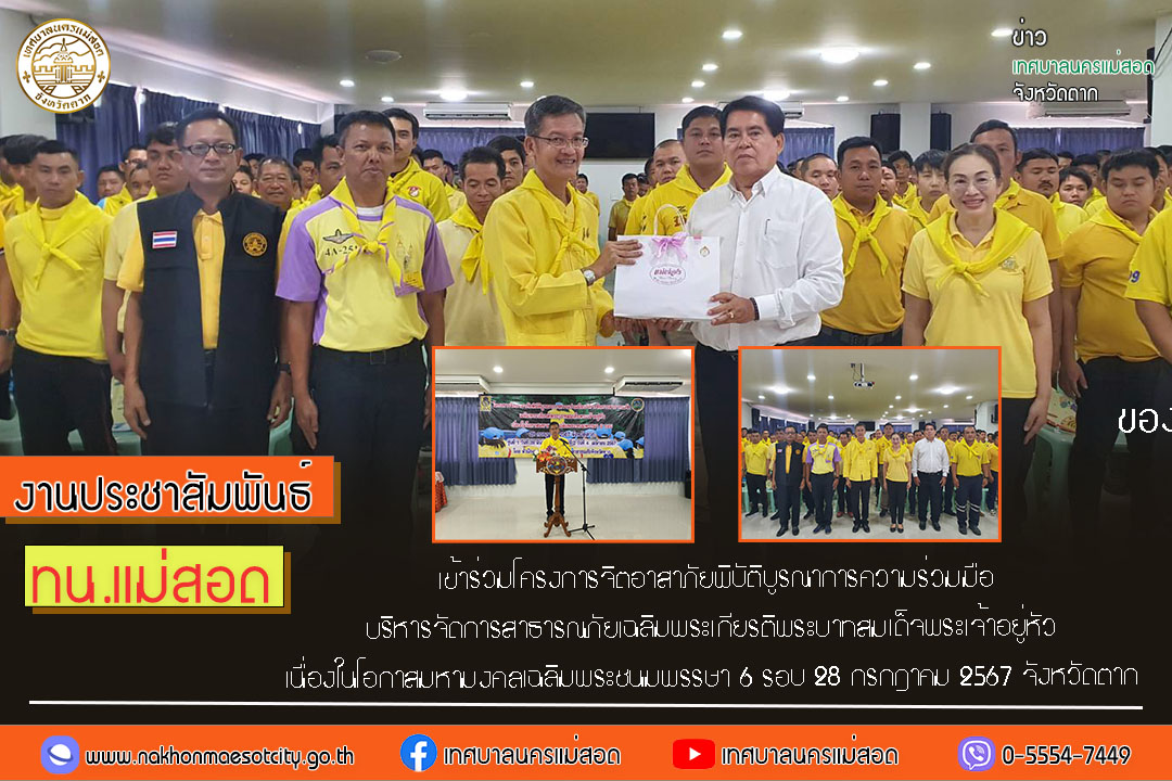ทน.แม่สอด เข้าร่วมโครงการจิตอาสาภัยพิบัติบูรณาการความร่วมมือบริหารจัดการสาธารณภัยเฉลิมพระเกียรติพระบาทสมเด็จพระเจ้าอยู่หัว เนื่องในโอกาสมหามงคลเฉลิมพระชนมพรรษา 6 รอบ 28 กรกฎาคม 2567 จังหวัดตาก