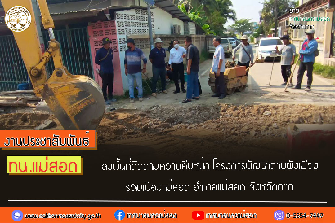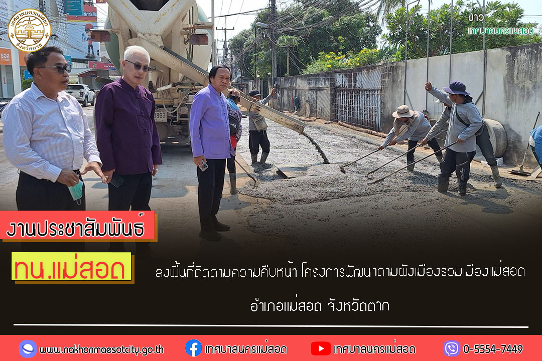 ทน.แม่สอด ลงพื้นที่ติดตามความคืบหน้า โครงการพัฒนาตามผังเมืองรวมเมืองแม่สอด อำเภอแม่สอด จังหวัดตาก