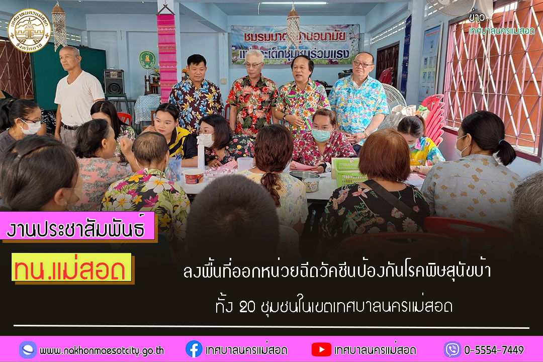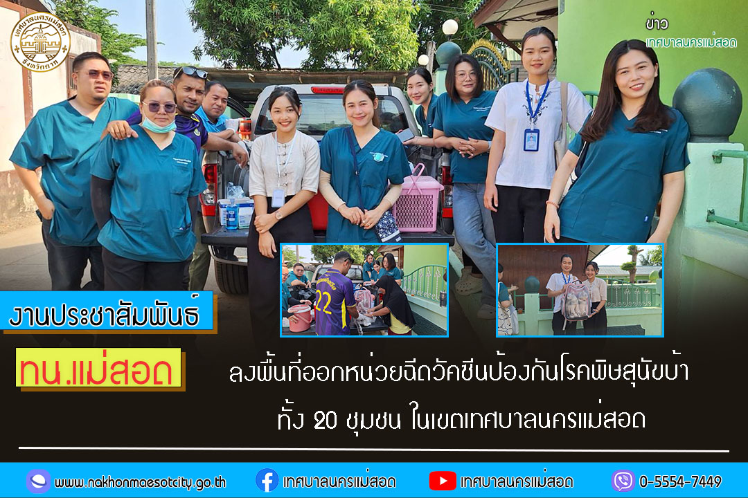 เทศบาลนครแม่สอด ลงพื้นที่ออกหน่วยฉีดวัคซีนป้องกันโรคพิษสุนัขบ้า ทั้ง 20 ชุมชน ในเขตเทศบาลนครแม่สอด